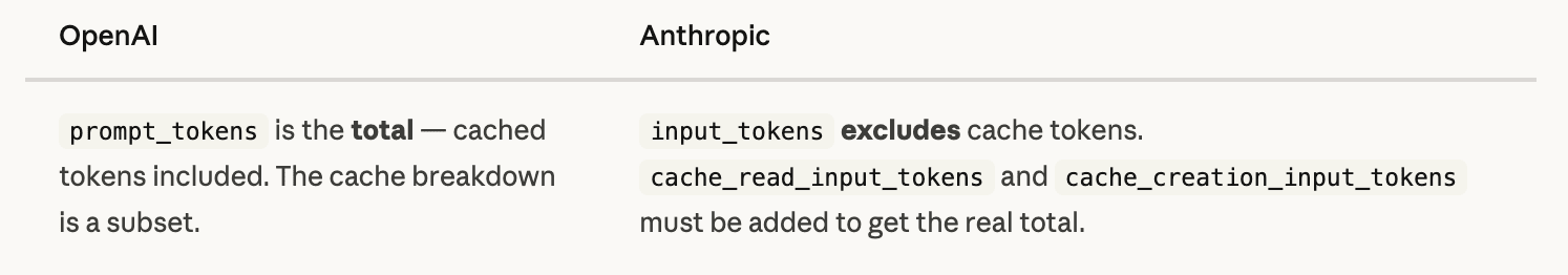 Example 3: Normalizing Cost — When Providers Disagree on What "Input Tokens" Means