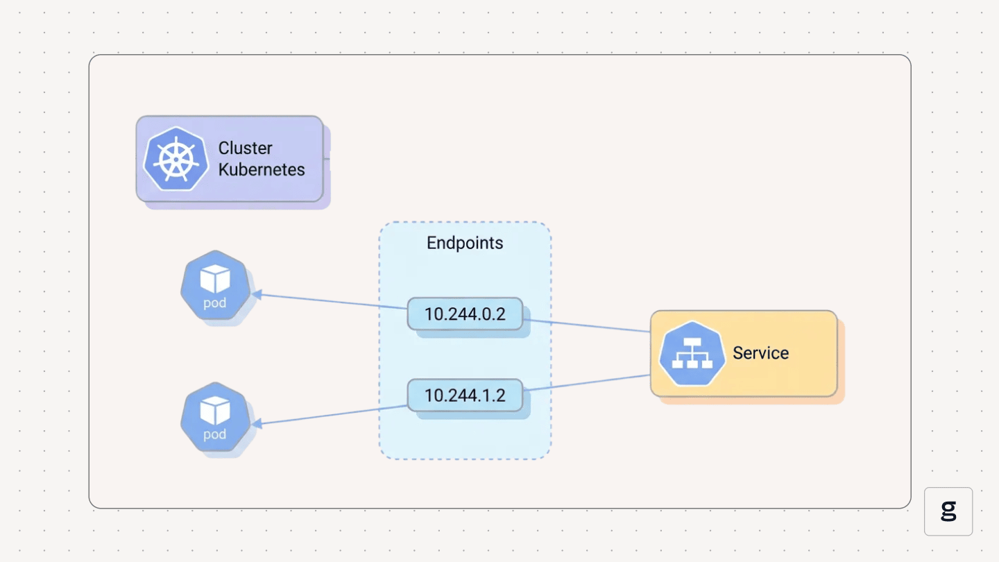 As we’ve explained above, Endpoints don’t do this on their own. They function as part of a Service, which (in most cases) exposes an external-facing network address that external resources can connect to. Then, inside the cluster, Endpoints are used to route traffic from that external address to actual Pods.