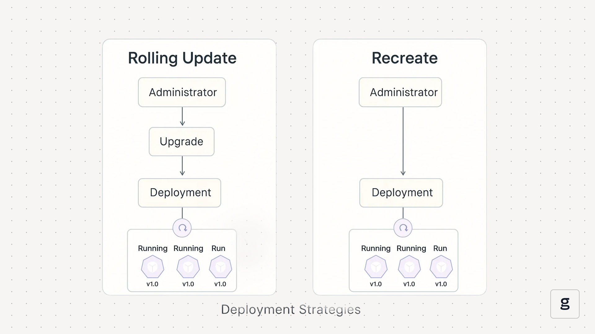 For example, if admins configure a Deployment to use rolling updates, Kubernetes will gradually replace older Pods with newer ones as part of the update process. This helps to reduce the risk of downtime compared to ripping-and-replacing all Pods at once.