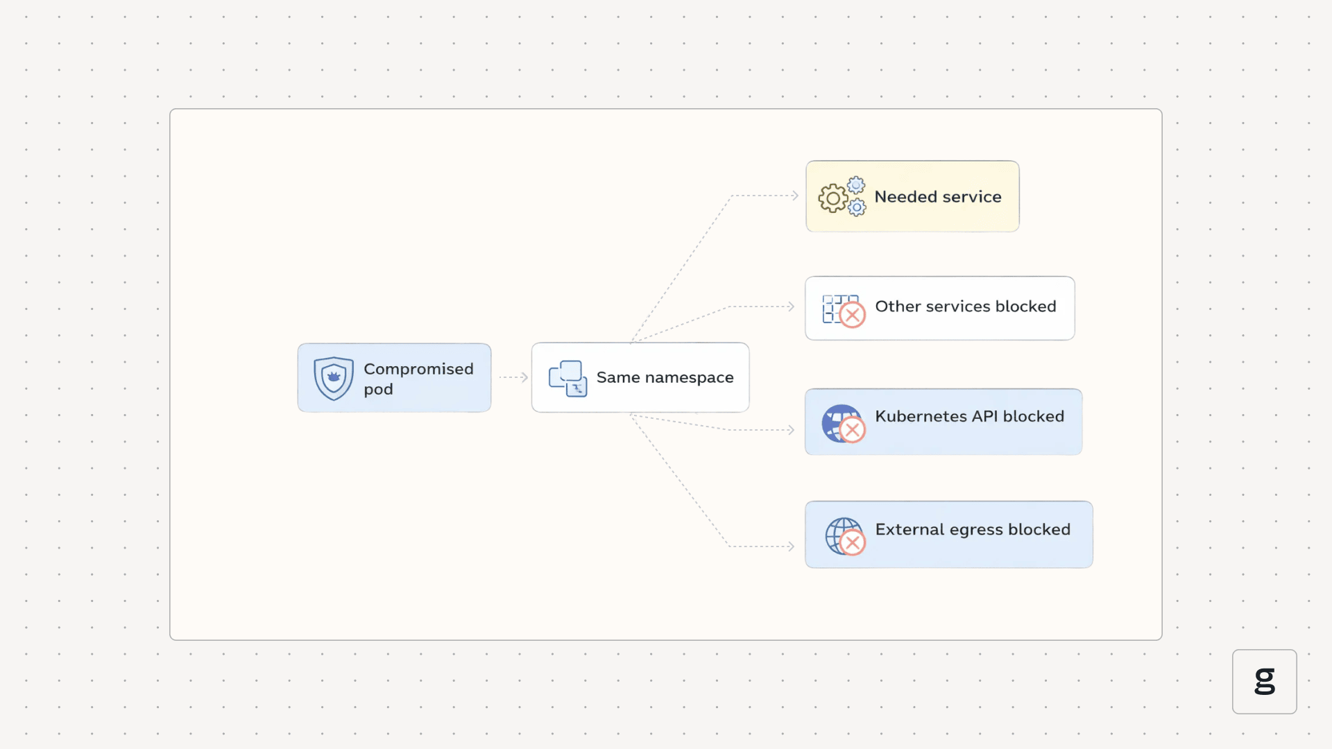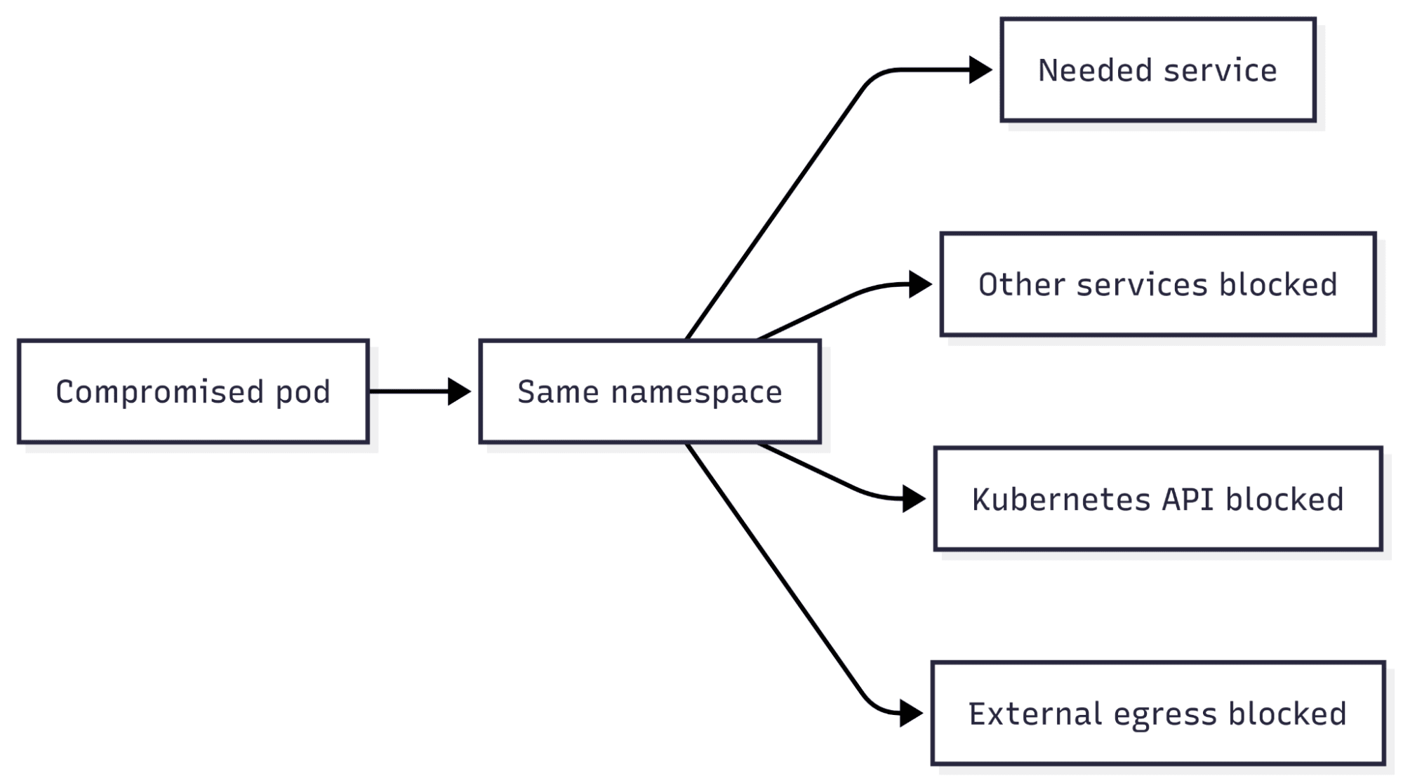 Blast radius control usually comes from combining network policy, identity policy, and admission guardrails. If you only do one of these, you often leave an attacker an easy path around it.