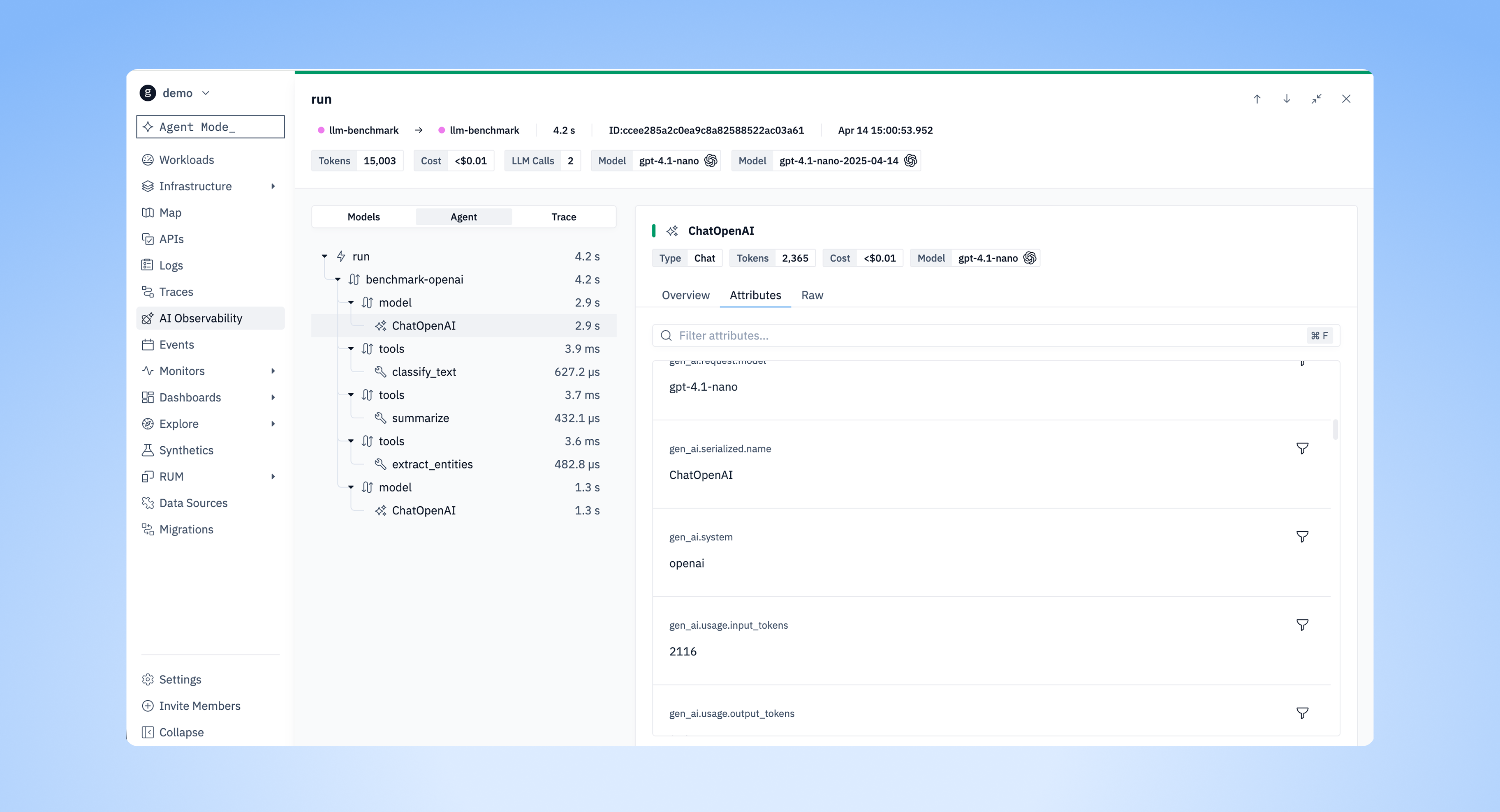 AI Observability | Polished Span Tree & Attributes Tab